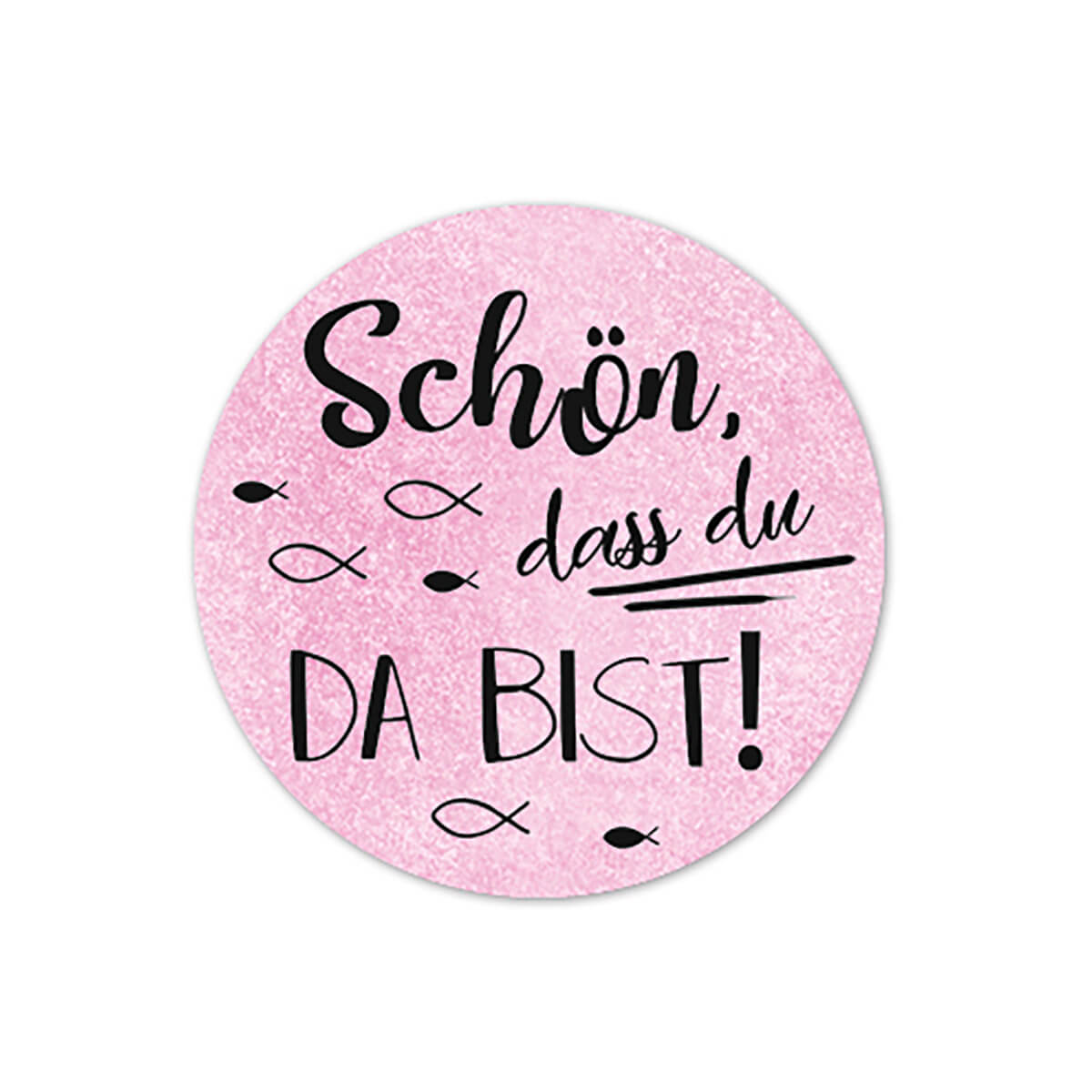 Mit dem Stickerbogen-Set Fische mit Text "Schön, dass du da bist!" hat man viele Gestaltungsmöglichkeiten, z.B. um Platzkarten oder Gastgeschenke zur Konfirmation, Kommunion, Taufe, Hochzeit oder zum Geburtstag zu verzieren.