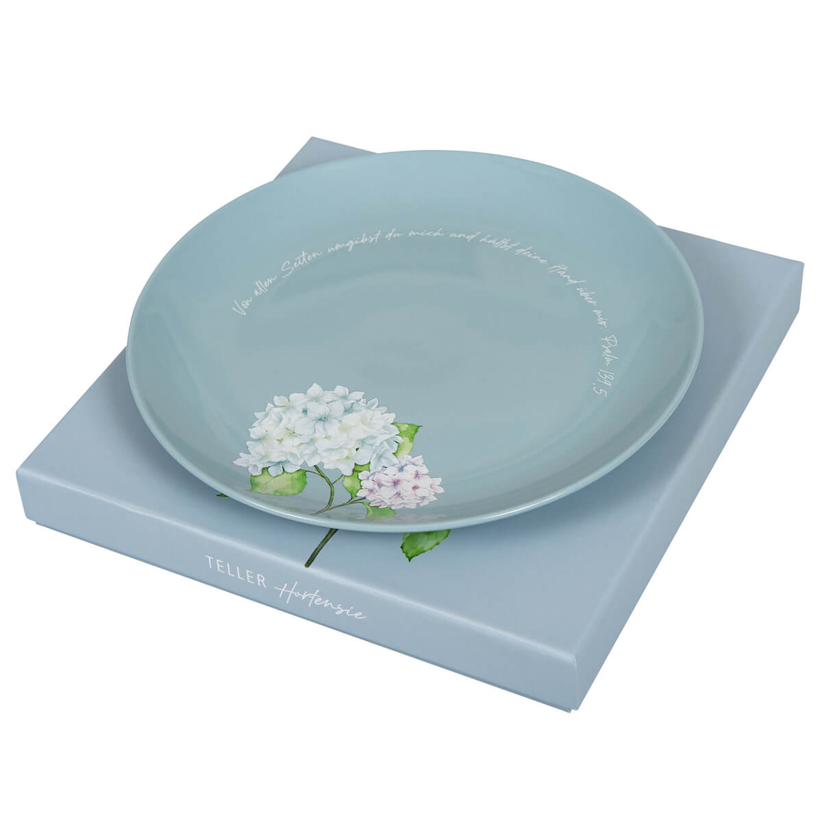 Passend zur Tasse gibt es auch einen Teller mit Hortensien-Motiv, ideal zum Frühstück oder zur Kaffee-Zeit.